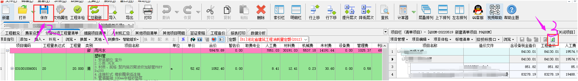答:針對與p8qdxm的非單文件項目工程,它是跟單位工程數(shù)據(jù)聯(lián)動的。如果出現(xiàn)了數(shù)據(jù)沒有同步匯總,需要按照以下步驟操作。 第一步打開單位工程點擊匯總刷新,然后點擊保存。如果保存按鈕是灰顯,說明數(shù)據(jù)可能沒有變化會導致正常匯總不了??梢圆扇‰S便改動一下數(shù)據(jù)再改回的方法,在保存按鈕綠顯的狀態(tài)下點擊保存。所有單位工程都刷新保存了之后,關(guān)閉單位工程,最后一步就是回到項目工程中點擊重新提取數(shù)據(jù)。 如下截圖所示: