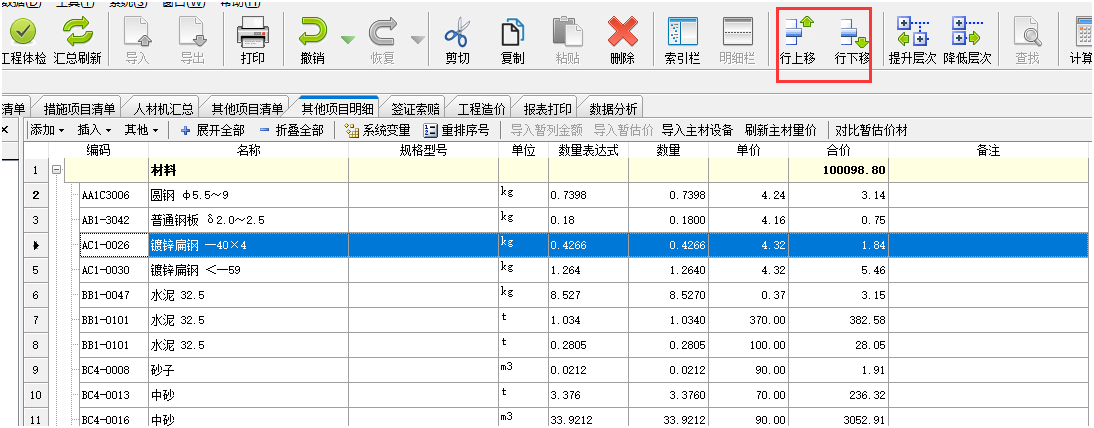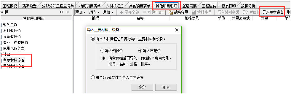 答:人材機界面勾選主要材料標志后,切換到其他項目明細界面,點擊導入主材設(shè)備,在這個界面可以上下行移動排序。