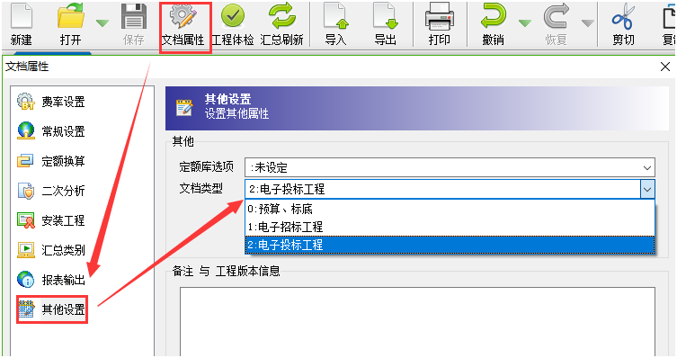 答:一般招標文件給的清單都是不能編輯修改的,咱們軟件導入招標文件之后文檔屬性默認為電子投標工程。在這個狀態(tài)下清單是不可以操作、修改或者刪除的。如需調(diào)整,可以把文檔類型選擇為預(yù)算標底。如下截圖所示: