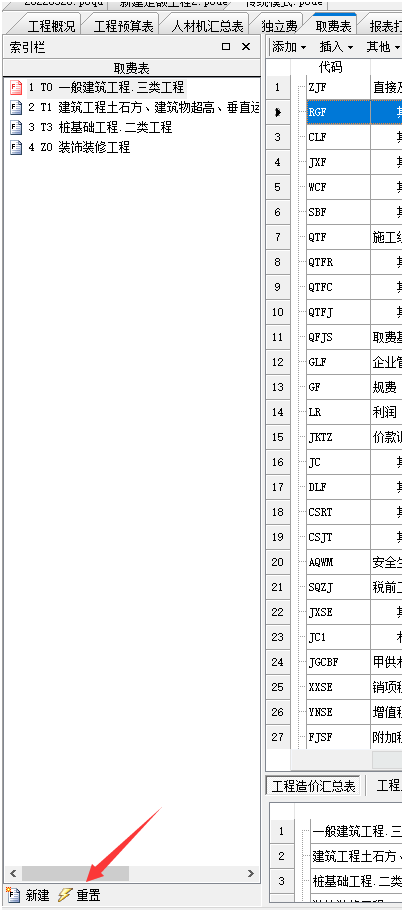 如果不希望文檔屬性或者費率重置的時候會將固定好的安全文明施工費再重置,則需要將所有的分專業(yè)的安全文明施工費的定額行都固定。如下截圖: